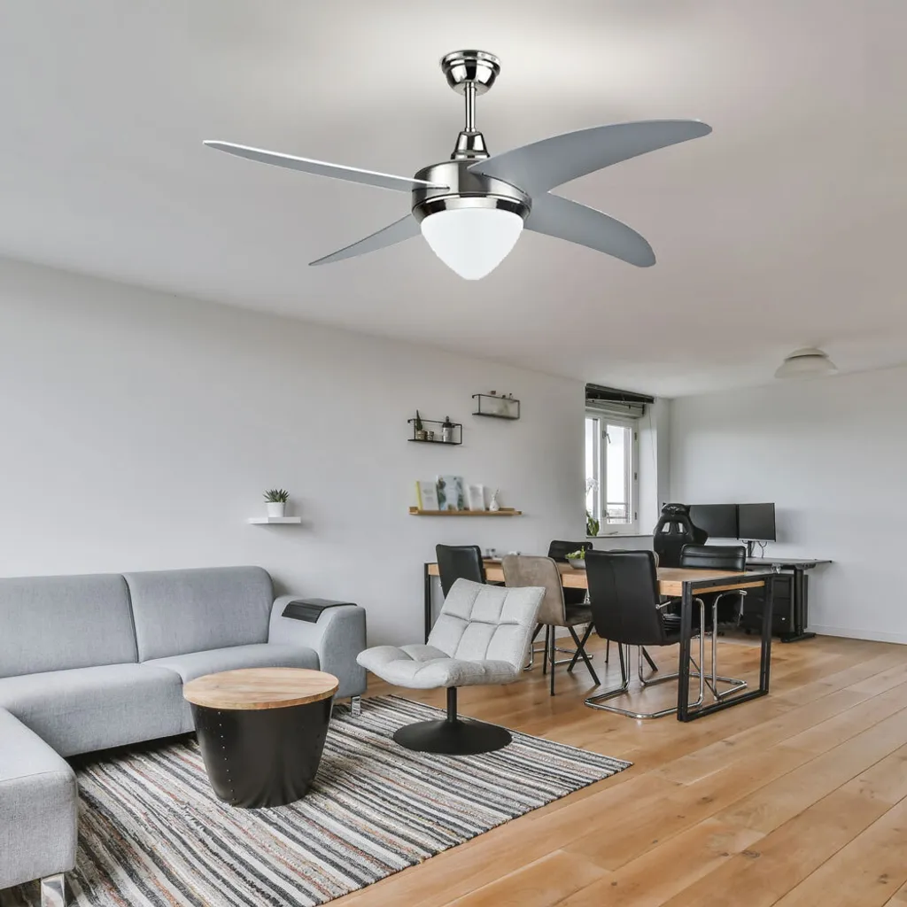 Halten Sie den Raum mit diesem schönen Deckenventilator aus Stahl kühl. Sie können diesen Ventilator problemlos mit der mitgelieferten Fernbedienung bedienen. Dieser Deckenventilator ist mit einer LED-Lampe ausgestattet, die 3 helle Farben erzeugen kann.