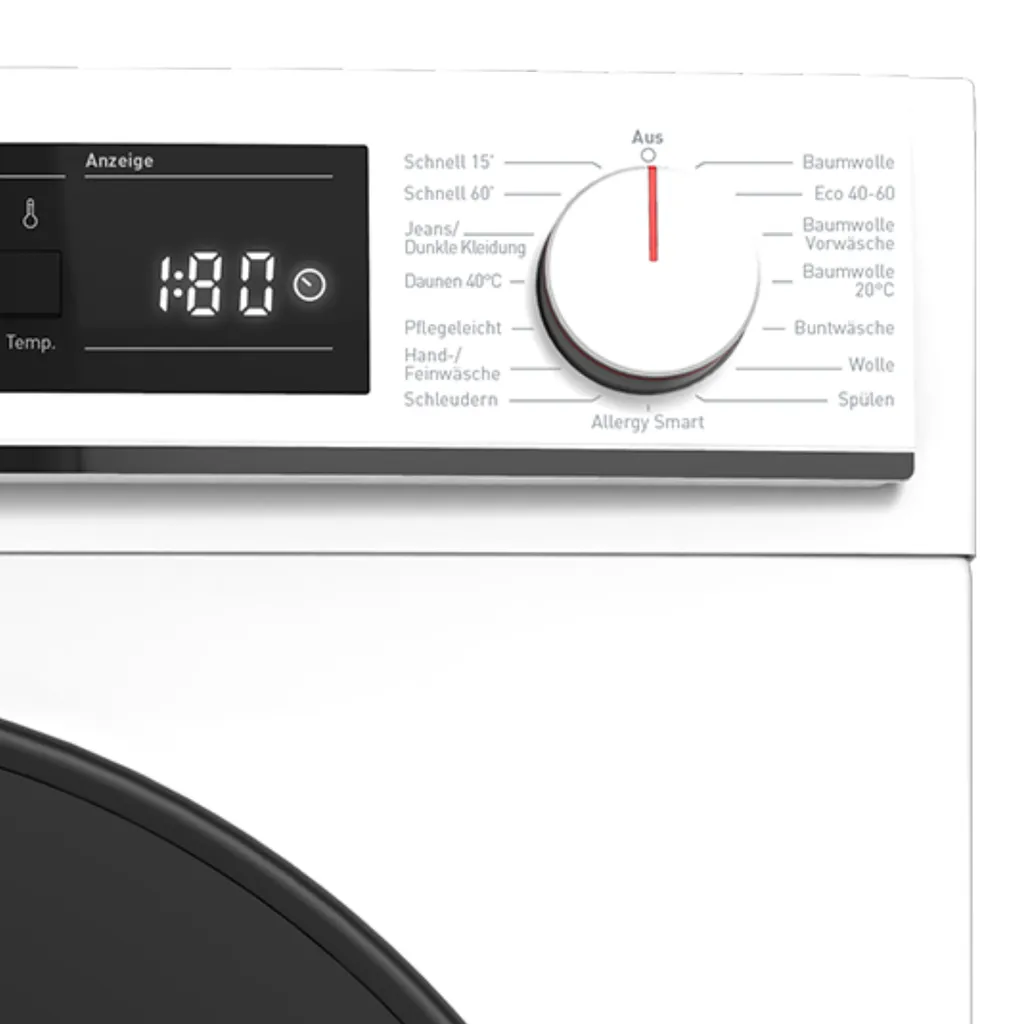 - Baumwolle|Eco 40-60°C|Baumwolle Vorwäsche|Baumwolle 20°C|Buntwäsche|Wolle|Spülen|Allergy Smart|Schleudern|