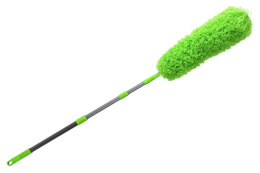- hat einen Teleskopstock, mit dem Sie selbst an den schwierigsten Stellen Staub entfernen können,
