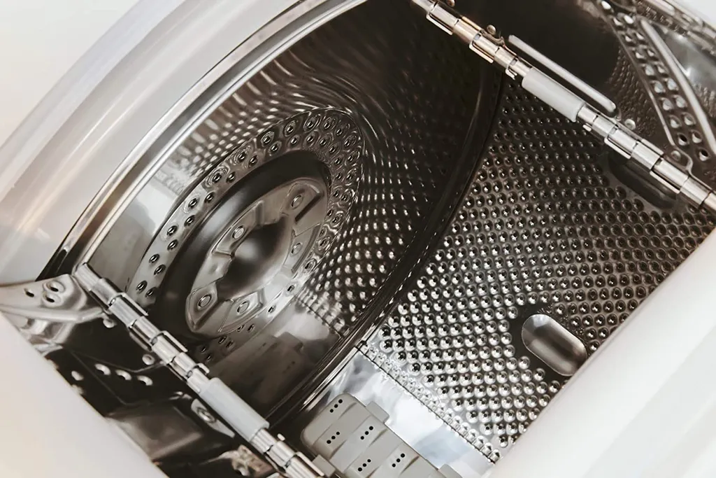 Waschmittel und Wasser werden bereits vermischt auf die Wäsche gesprüht. Das spart Wasser und Energie und schont die Umwelt.